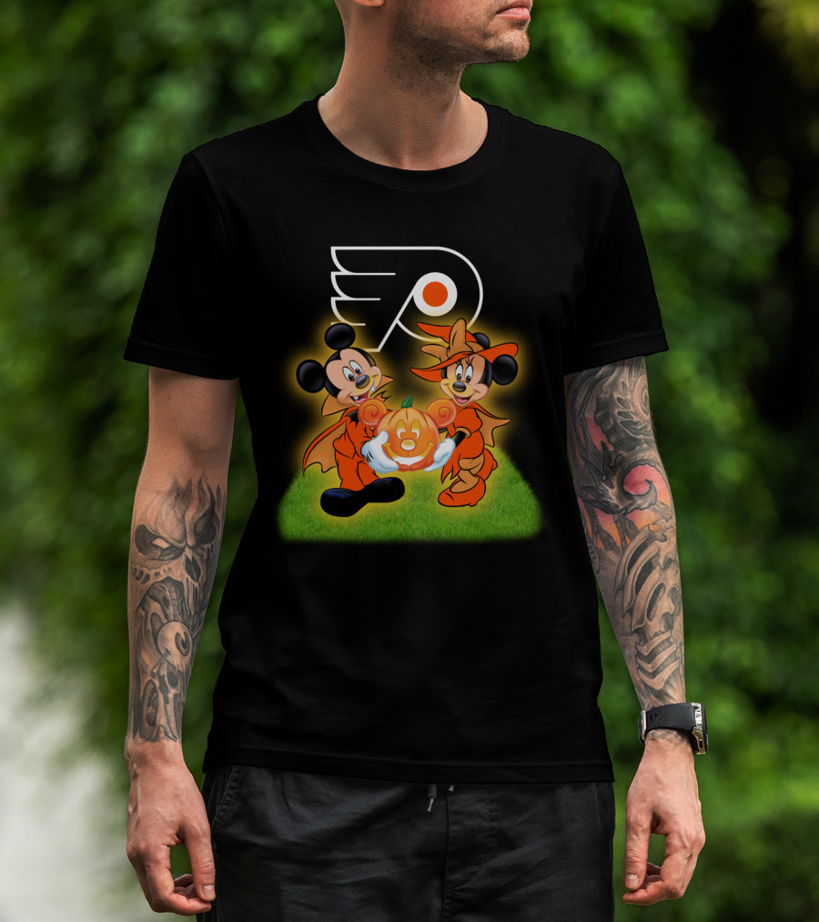 Halloween Philadelphia Flyers Mickey And Minnie Mouse Pumpkin Fun T-Shirt