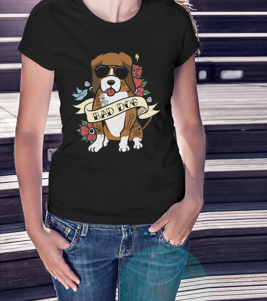 BAD DOG BASSET HOUND WITH SUNGLASSES AND TATTOO MOTIFS T-Shirt