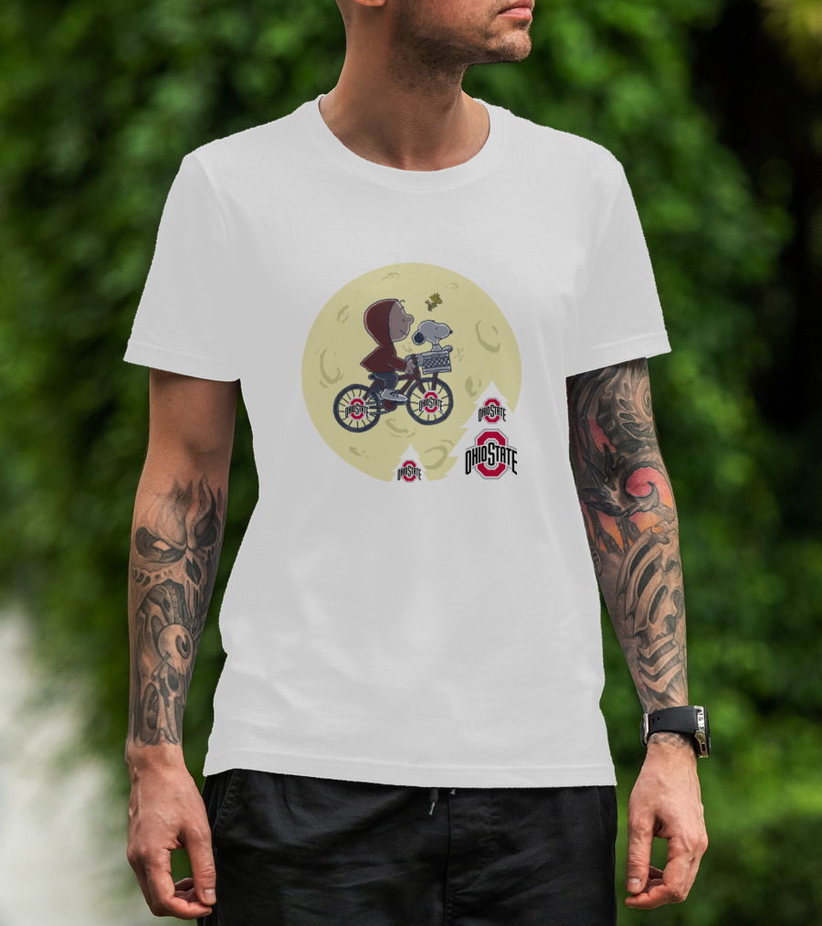Ohio State Buckeyes Halloween Moon Ride With Beagle And Bicycle T-Shirt