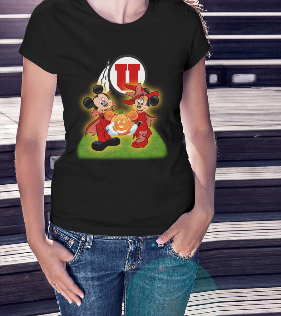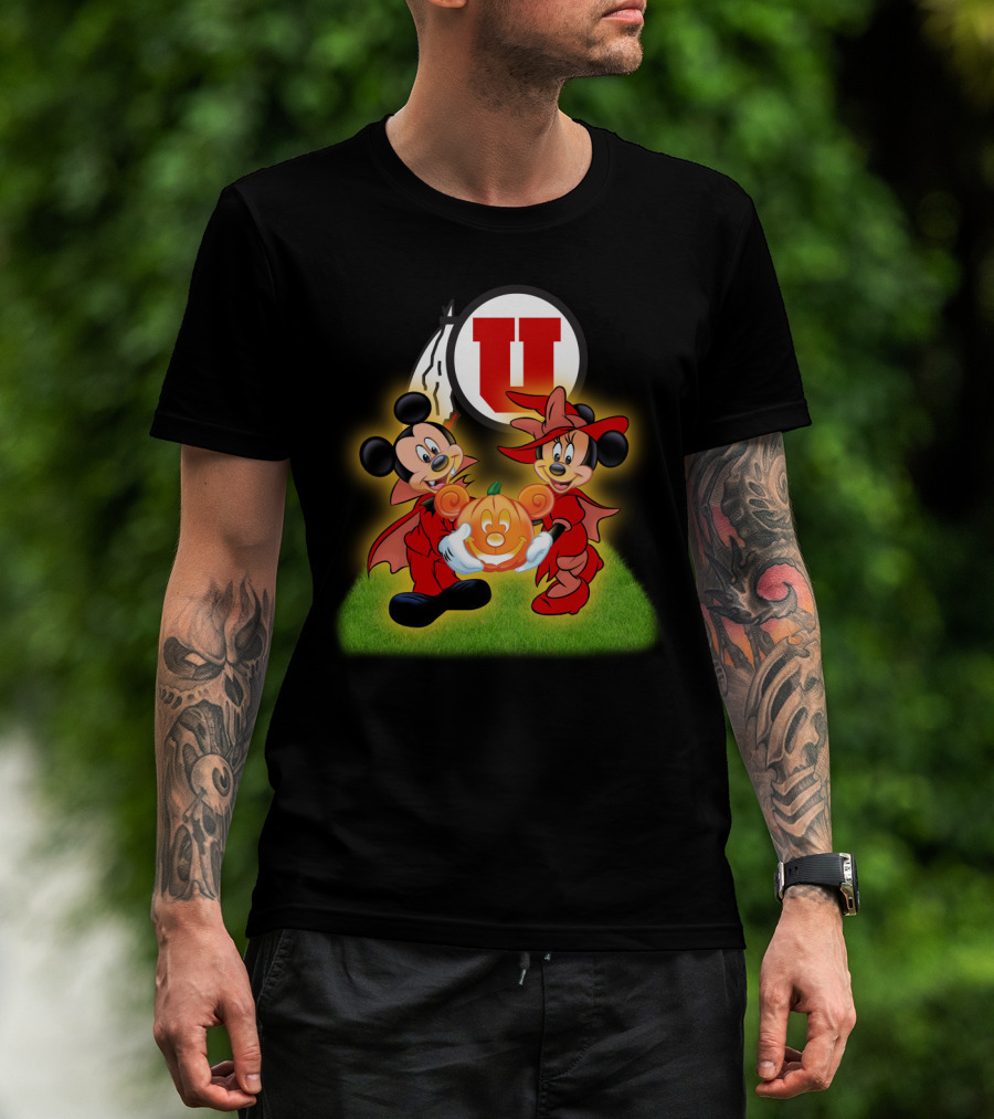 Utah U Halloween Football Pumpkin With Mickey And Minnie Mouse T-Shirt