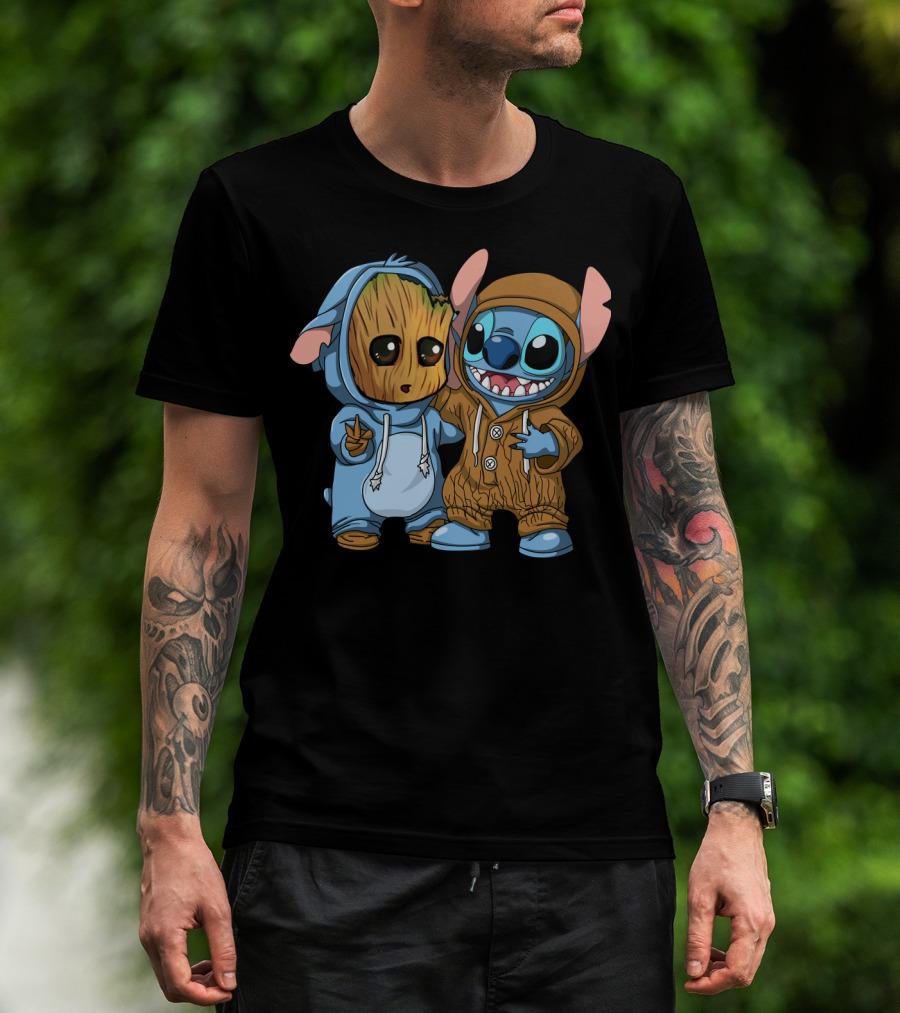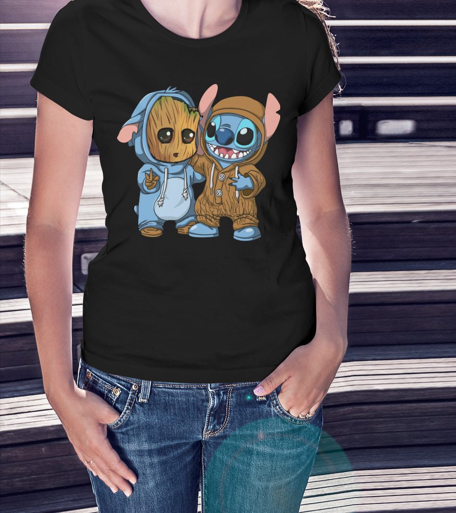Adorable Groot And Stitch Crossover In Costume Friendship T-Shirt