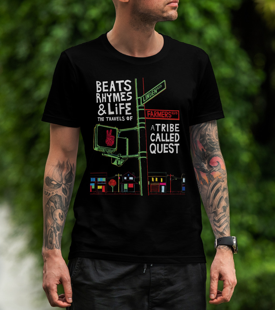The Beats Rhymes and Life The Travels of A Tribe Called Quest Linden Blvd Farmers Blvd T-shirt is designed for everyday wear and a consistent fit. Fabric is pre-shrunk ring-spun cotton with durable stitching. See the size chart below for exact measurements.