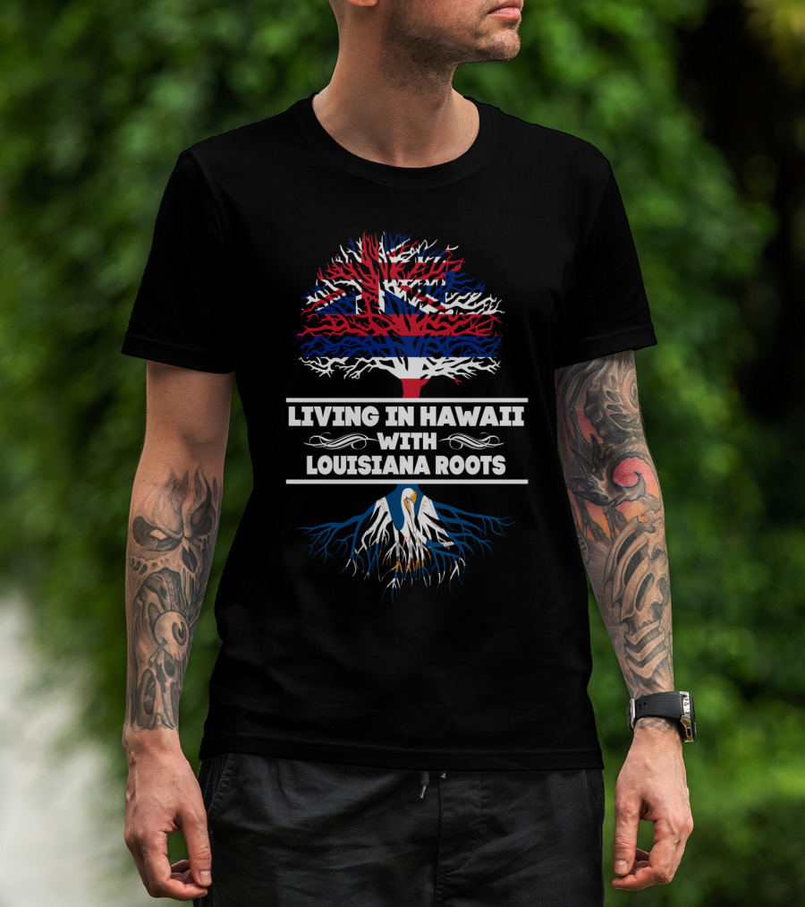 Hawaii Flag Tree And Louisiana Roots With Pelican T-Shirt