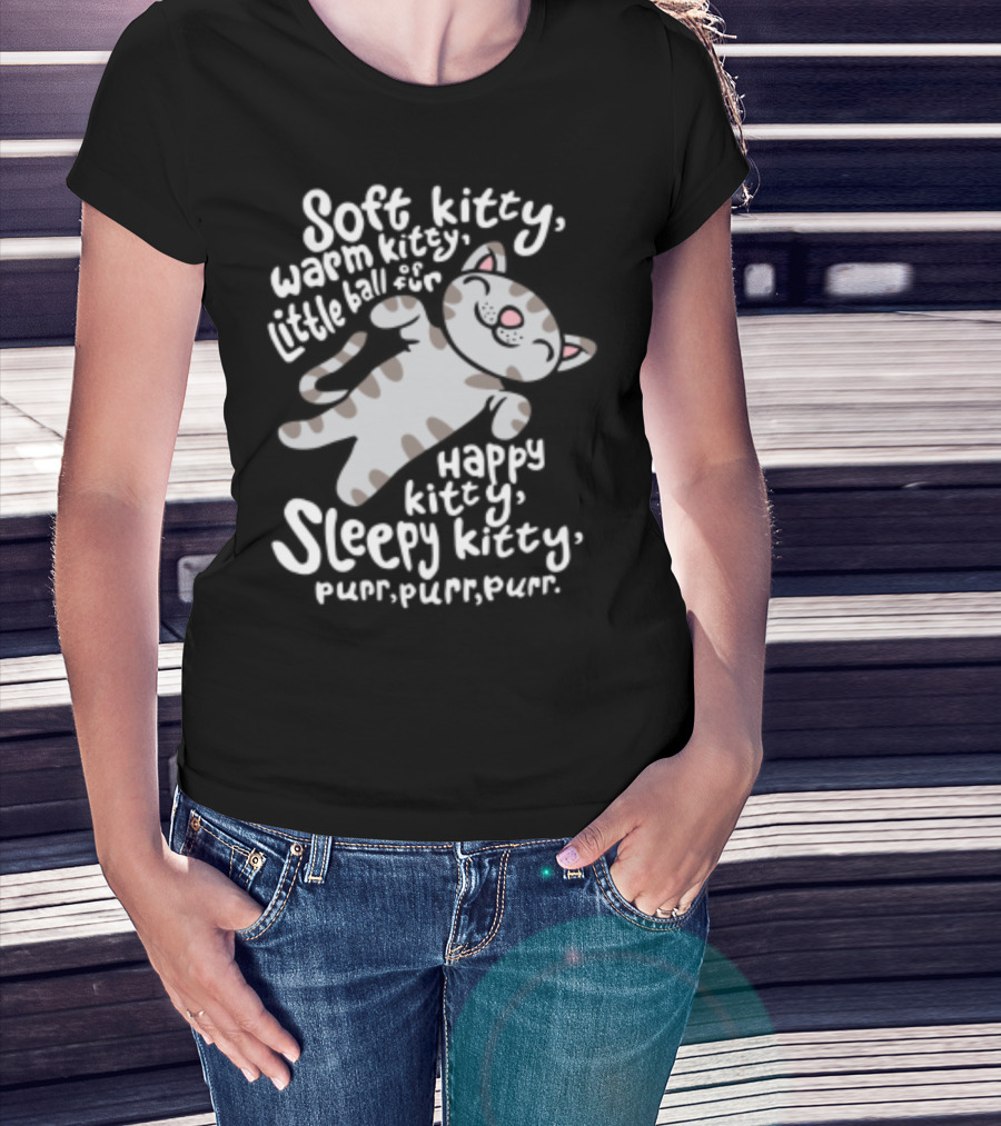 Soft Kitty Warm Kitty Little Ball Of Fur Happy Kitty Sleepy Kitty Purr Purr Purr T-Shirt