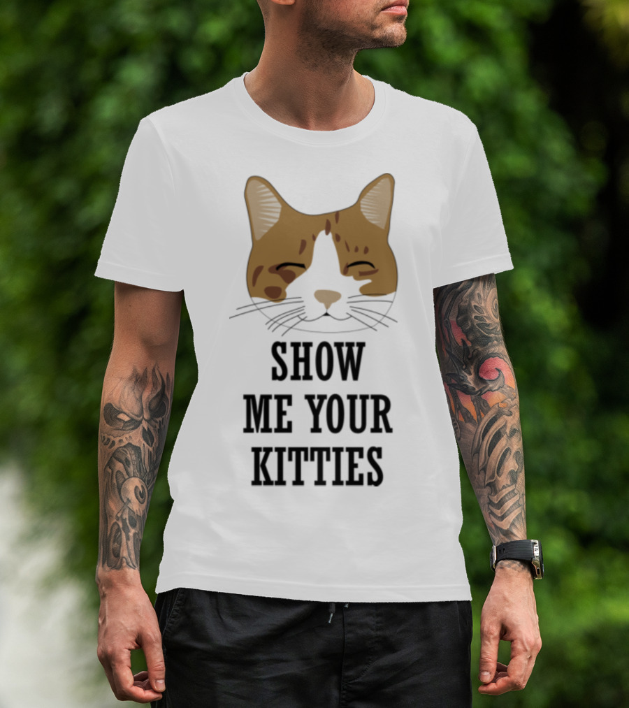 The Show Me Your Kitties Cat Face T-shirt is designed for everyday wear and a consistent fit. Fabric is pre-shrunk ring-spun cotton with durable stitching. See the size chart below for exact measurements.