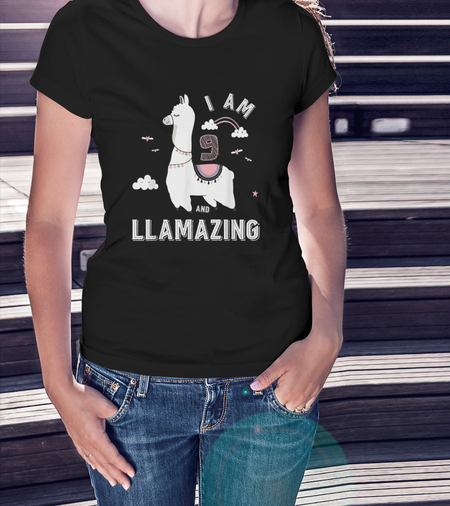 I Am 9 And Llamazing Funny Llama Cloud Birthday T-Shirt