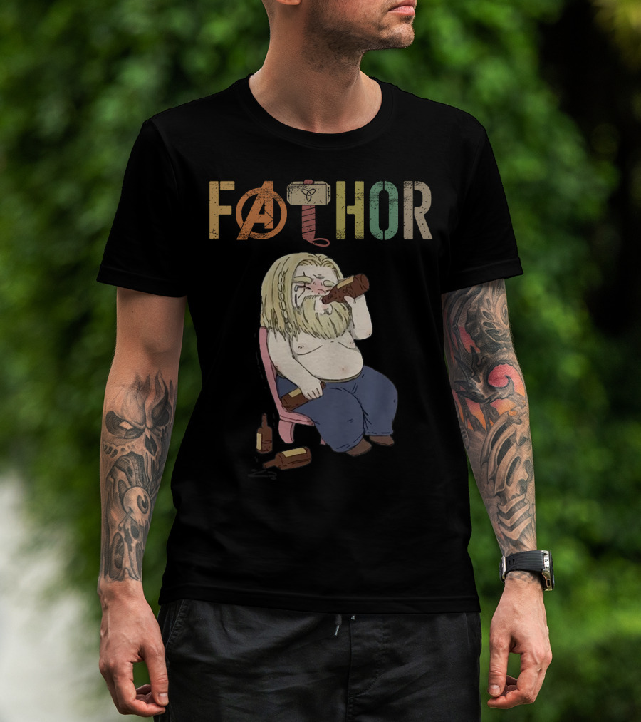 Fathor Thor Avengers Beer Drinking Illustration With Mjolnir Hammer T-Shirt