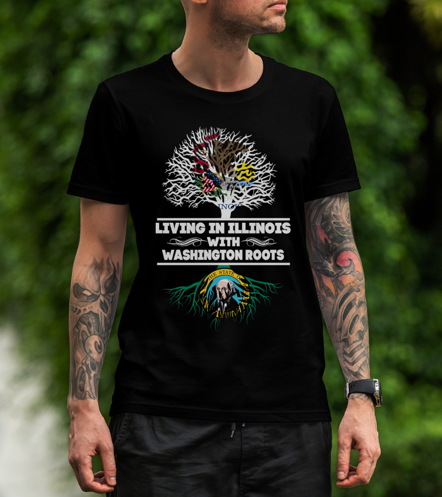 Illinois Living With Washington State Emblem Roots Tree T-Shirt