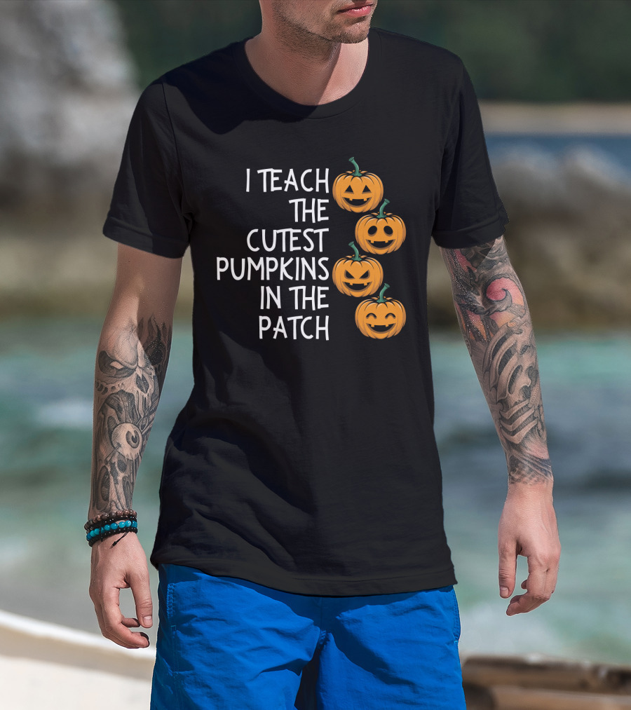 The Teaching The Cutest Pumpkins In The Patch with Smiling Jack-O'-Lanterns T-shirt is designed for everyday wear and a consistent fit. Fabric is pre-shrunk ring-spun cotton with durable stitching. See the size chart below for exact measurements.