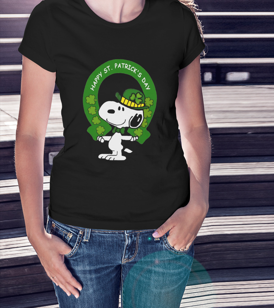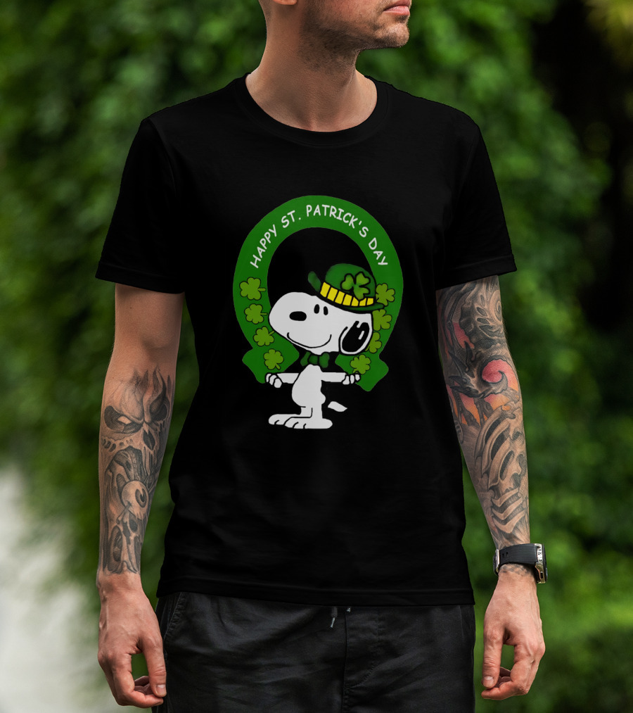 Snoopy Happy St. Patrick's Day With Shamrocks And Green Hat T-Shirt