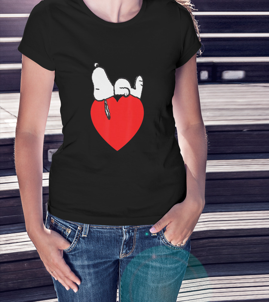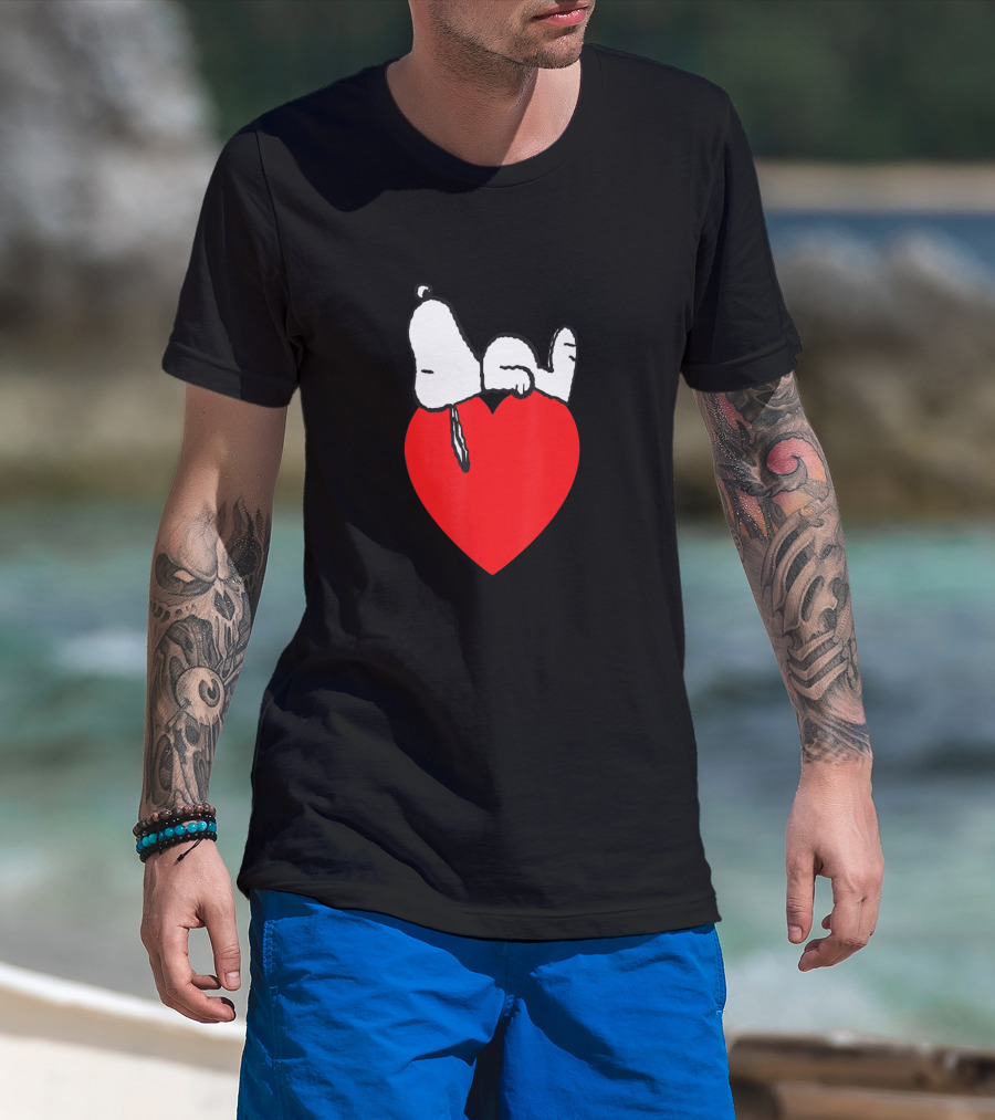 Snoopy Relaxing On Red Heart Background Charlie Brown Peanuts T-Shirt
