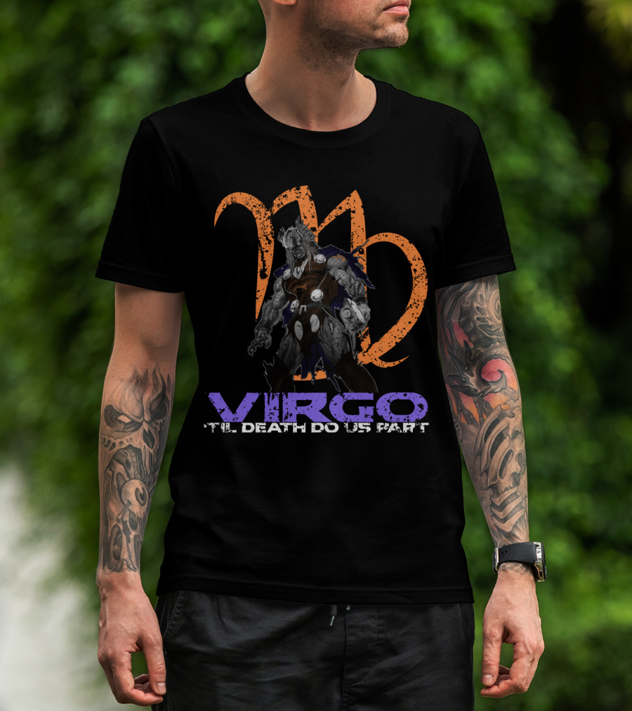 The Marvel Thor Zombie Virgo 'Til Death Do Us Part T-shirt is designed for everyday wear and a consistent fit. Fabric is pre-shrunk ring-spun cotton with durable stitching. See the size chart below for exact measurements.