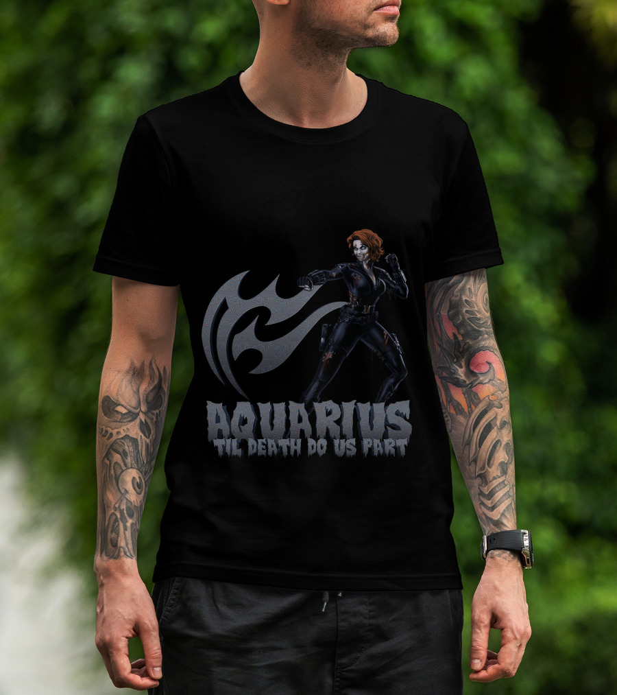 Aquarius Til Death Do Us Part Black Widow Marvel Fans T-Shirt