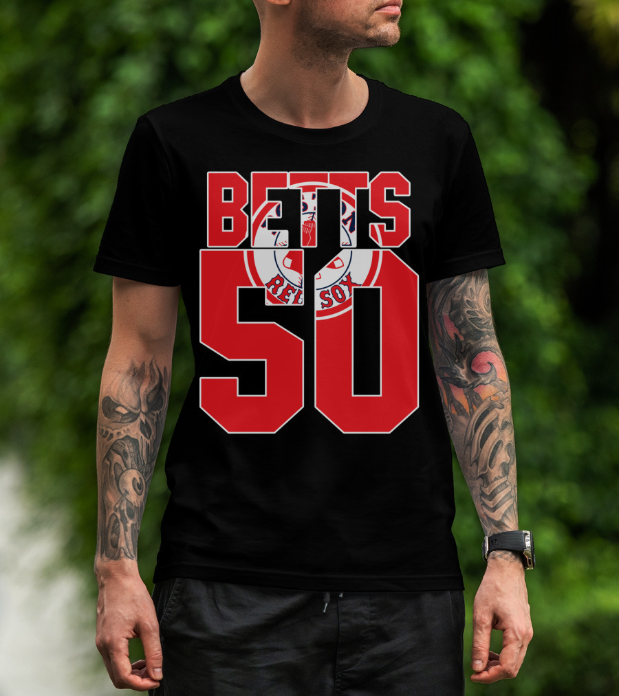 The Betts 50 Boston Red Sox T-shirt is designed for everyday wear and a consistent fit. Fabric is pre-shrunk ring-spun cotton with durable stitching. See the size chart below for exact measurements.