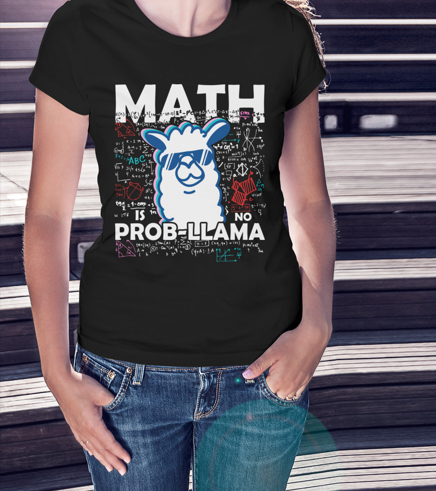Math Is No Prob-Llama With Cool Llama And Mathematical Equations T-Shirt