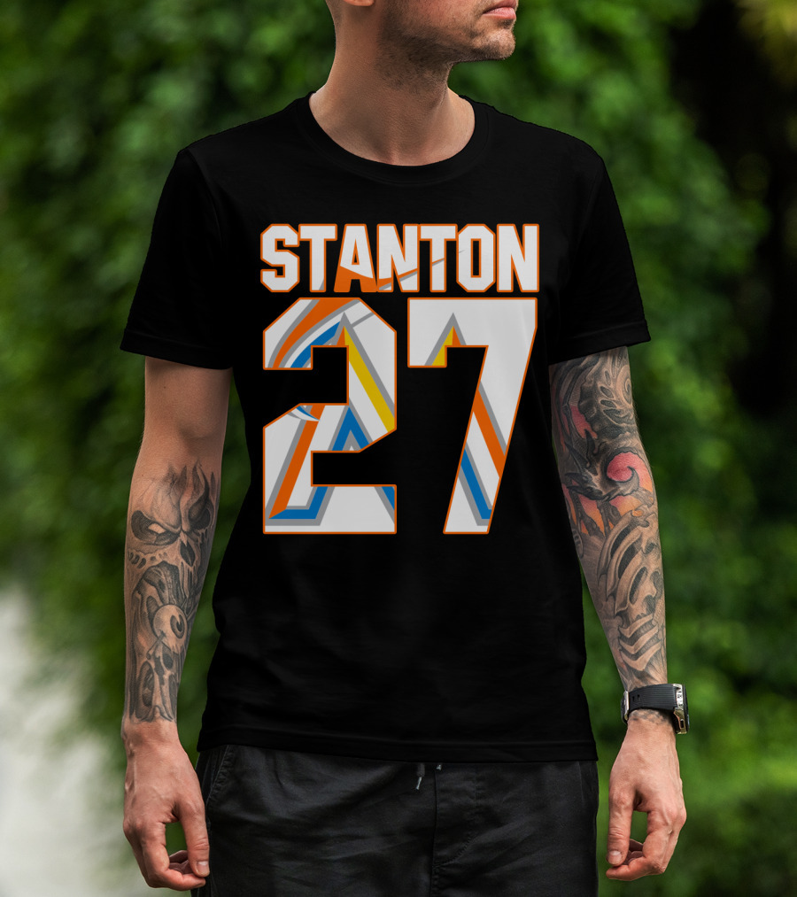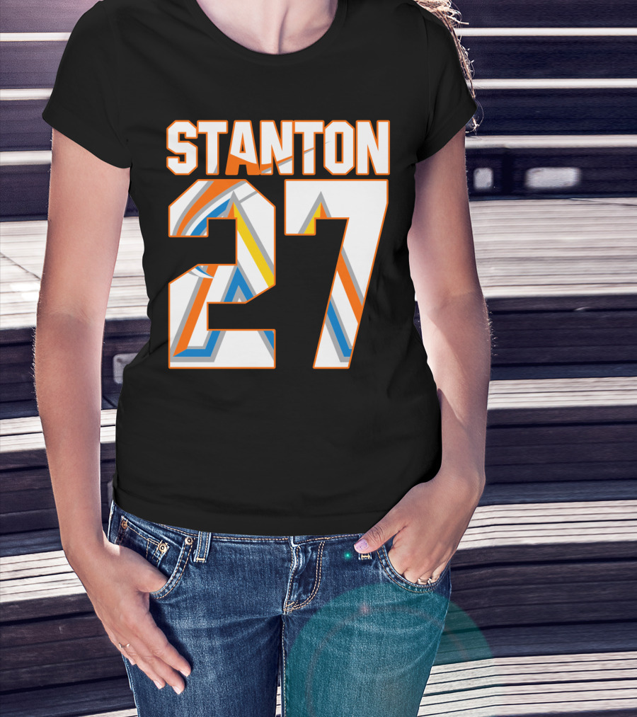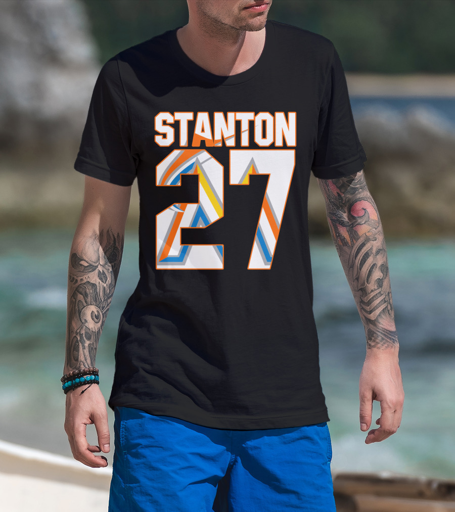 Stanton 27 Miami Marlins Geometric Pattern Jersey T-Shirt