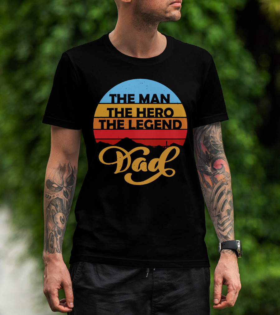 The The Man The Hero The Legend Dad Retro T-shirt is designed for everyday wear and a consistent fit. Fabric is pre-shrunk ring-spun cotton with durable stitching. See the size chart below for exact measurements.