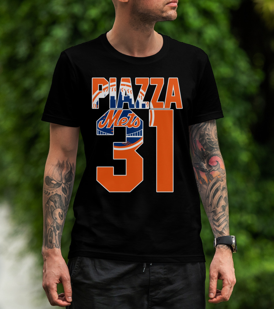 Piazza 31 New York Mets Retro Logo Baseball Memorabilia T-Shirt