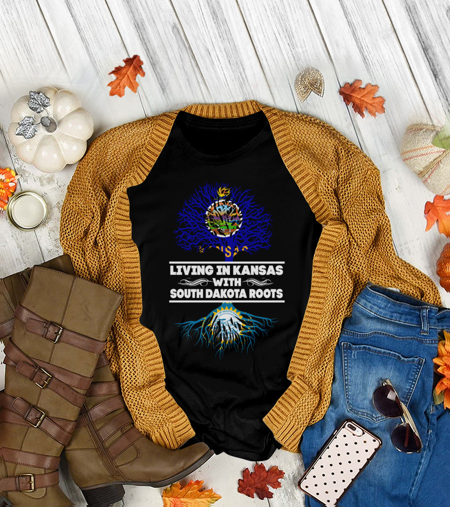 Living In Kansas With South Dakota Roots Kansas Seal And South Dakota Ribbons T-Shirt