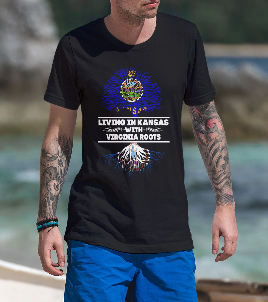 Living In Kansas Showcasing Vibrant State Flag With Proud Virginia Roots Symbolism T-Shirt
