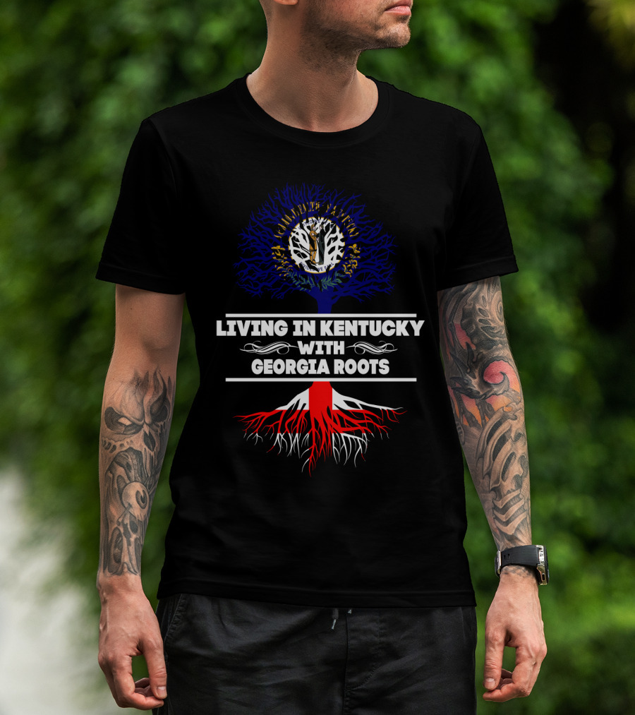 Living In Kentucky Embracing Georgia Roots With State Flag Symbolism T-Shirt