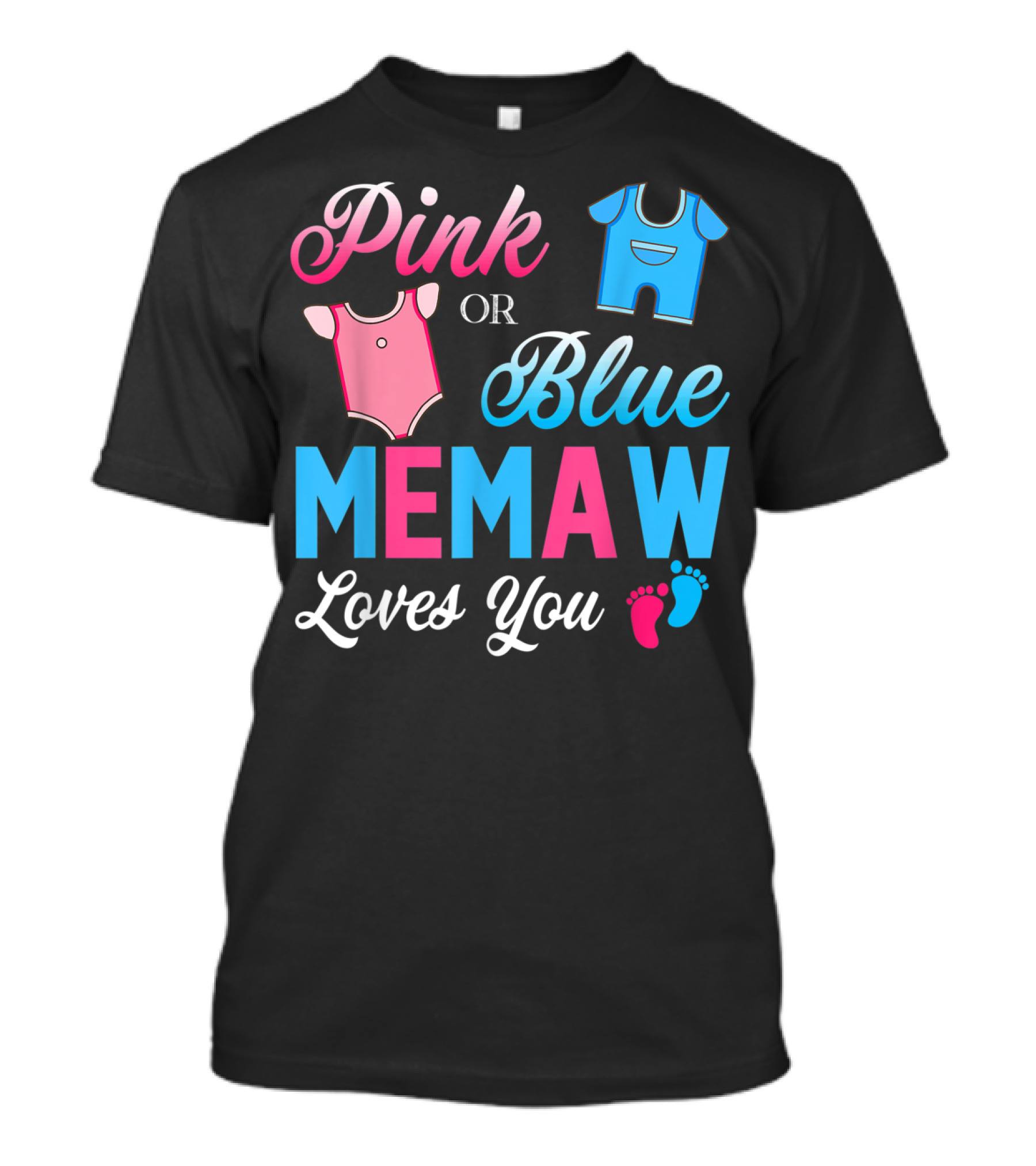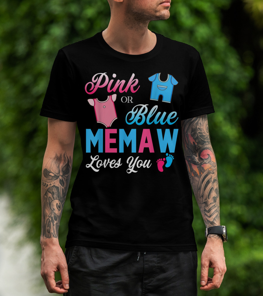 Pink Or Blue Memaw Loves You Baby Gender Reveal Onesie And Footprints T-Shirt