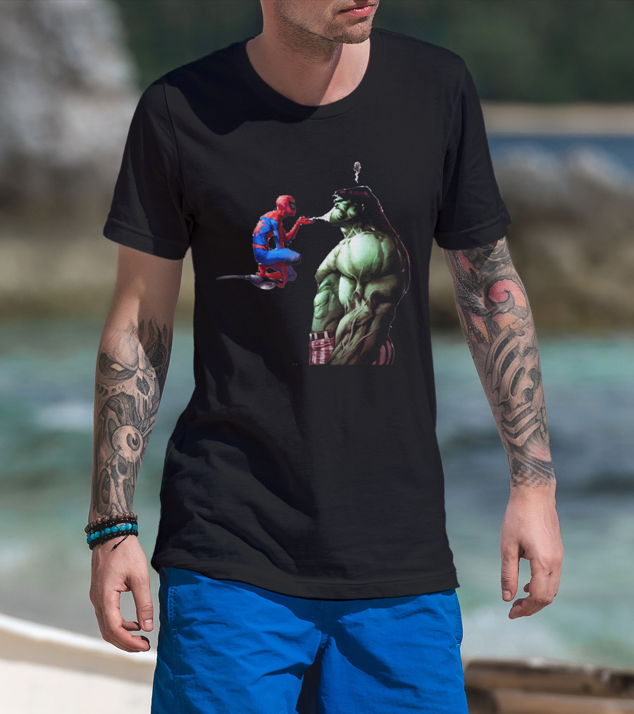 HULK AND SPIDERMAN COFFEE CONFRONTATION ICONIC MOMENT T-Shirt