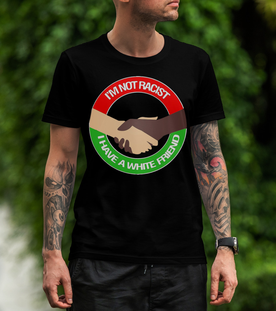 I'm Not Racist I Have A White Friend Handshake Circle Red Green Background T-Shirt