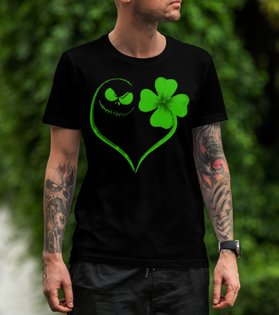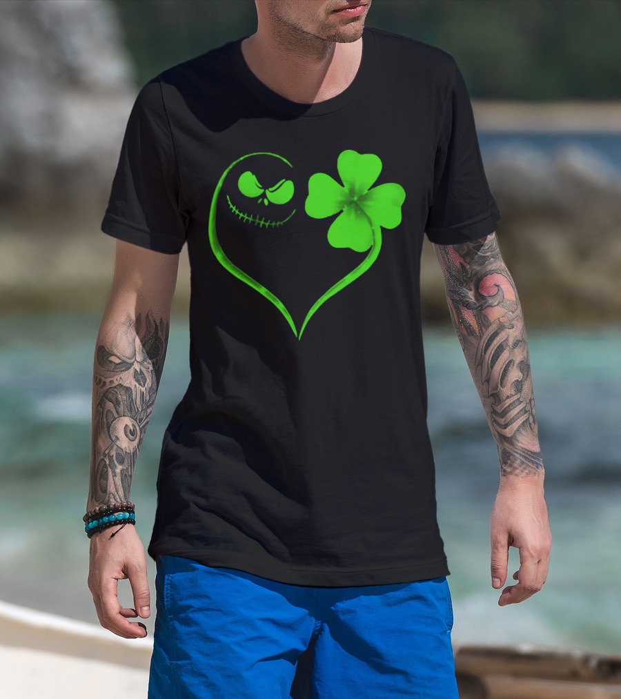 Jack Skellington Heart With Shamrock For St. Patrick's Day T-Shirt