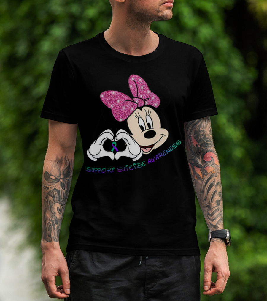 Minnie Mouse Support Suicide Awareness Pink Bow Heart Hands T-Shirt