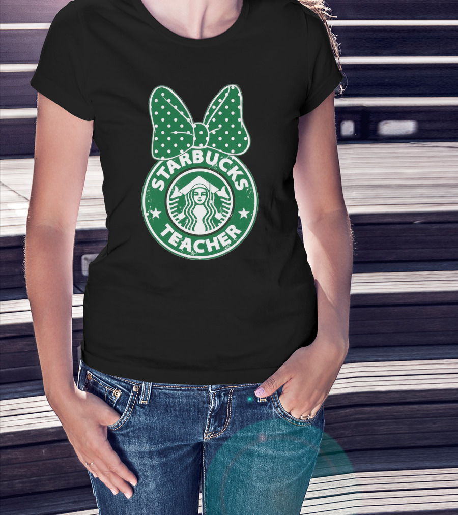 Starbucks Teacher Mickey Ears Polka Dot Bow T-Shirt