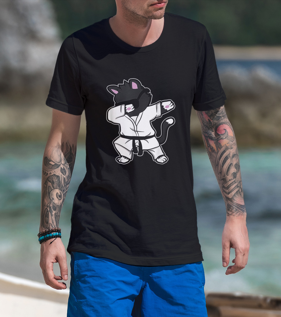 Karate Girls Love Funny Dabbing Karate Cat In Gi T-Shirt
