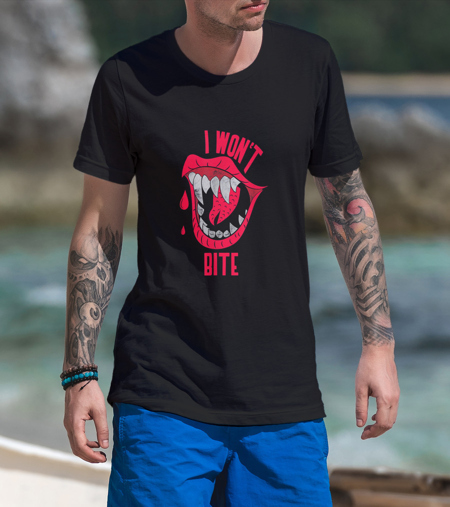 I Won't Bite Red Lips With Sharp Vampire Fangs Halloween T-Shirt