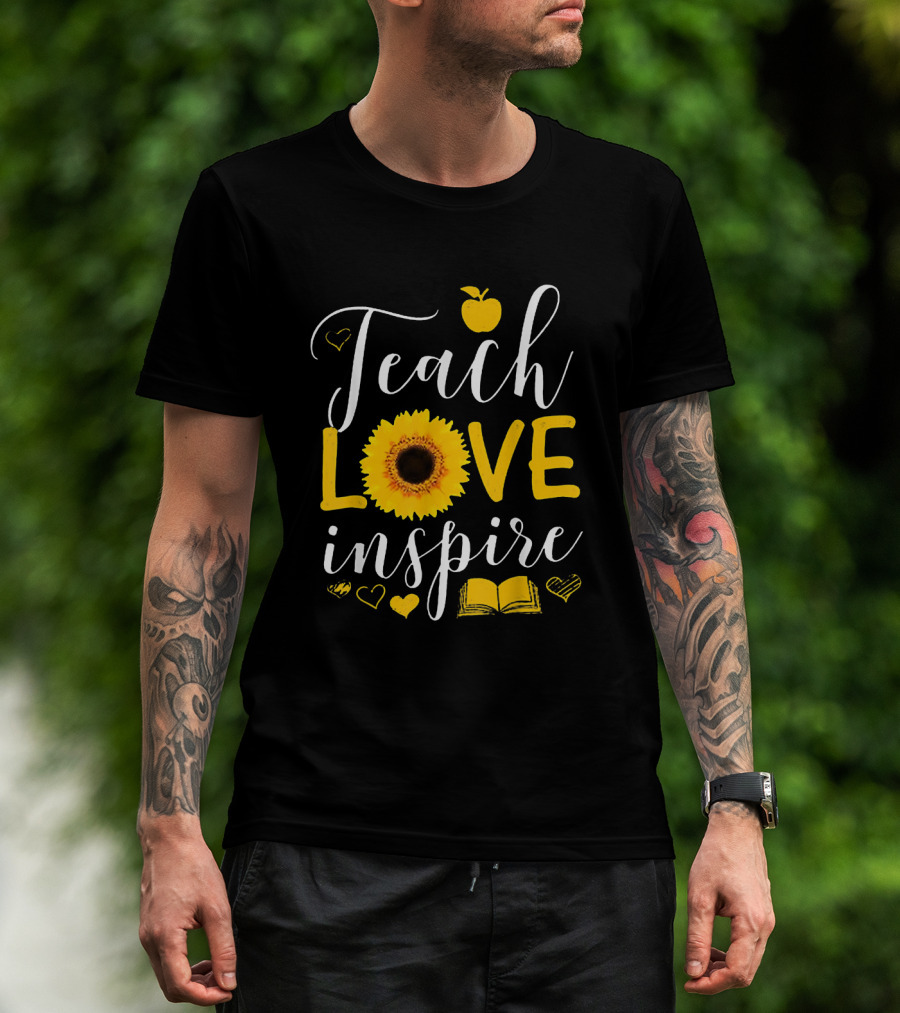 Teach Love Inspire Sunflower Heart Apple Book T-Shirt