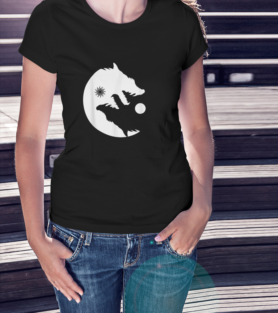 Wolf Yin Yang Sun Moon Vintage Harmony Balance Life Symbolism T-Shirt