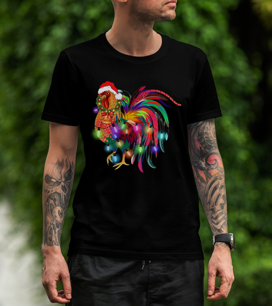 Festive Chicken With Christmas Lights And Santa Hat T-Shirt