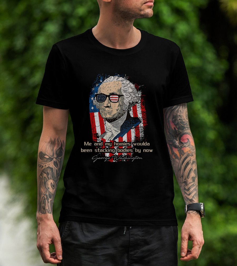 George Washington Patriotic Sunglasses American Flag Me And My Homies Woulda Been Stacking Bodies By Now T-Shirt