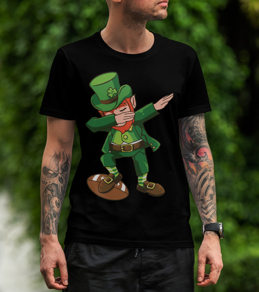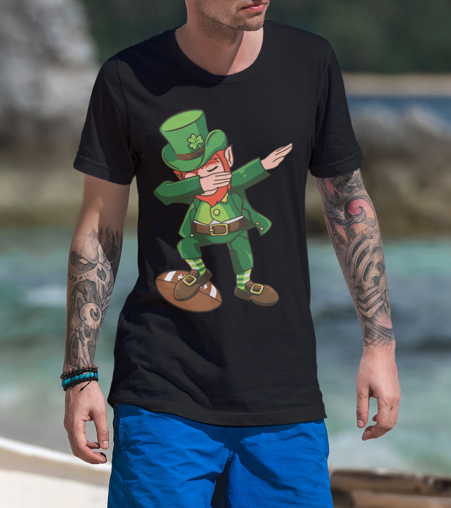 Leprechaun Dabbing On Football With Clover Hat T-Shirt