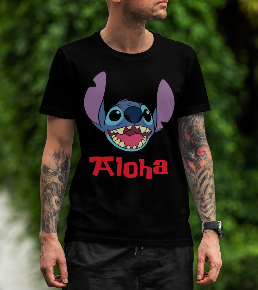 The Lilo And Stitch Aloha Stitch Iconic Blue Character Smile T-shirt is designed for everyday wear and a consistent fit. Fabric is pre-shrunk ring-spun cotton with durable stitching. See the size chart below for exact measurements.