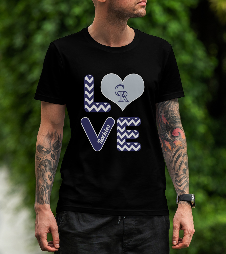The Love Colorado Rockies Heart T-shirt is designed for everyday wear and a consistent fit. Fabric is pre-shrunk ring-spun cotton with durable stitching. See the size chart below for exact measurements.