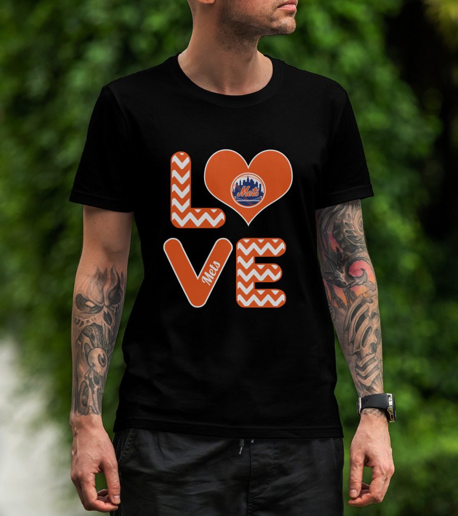 Love New York Mets Chevron Heart Logo Fans Baseball T-Shirt