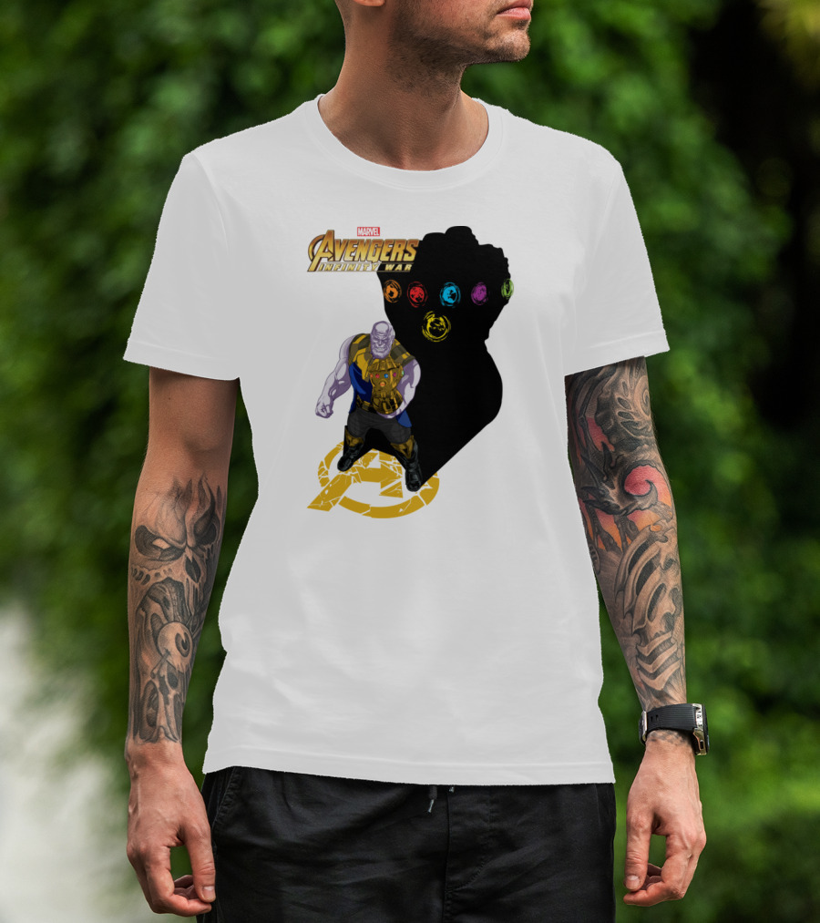 Avengers Infinity War Thanos With Gauntlet And Infinity Stones Shadow Marvel T-Shirt
