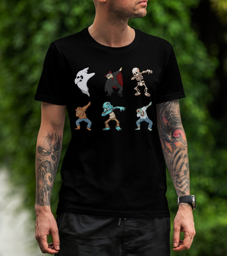 Dabbing Halloween Skeleton Ghost Vampire Werewolf Zombie Monster T-Shirt