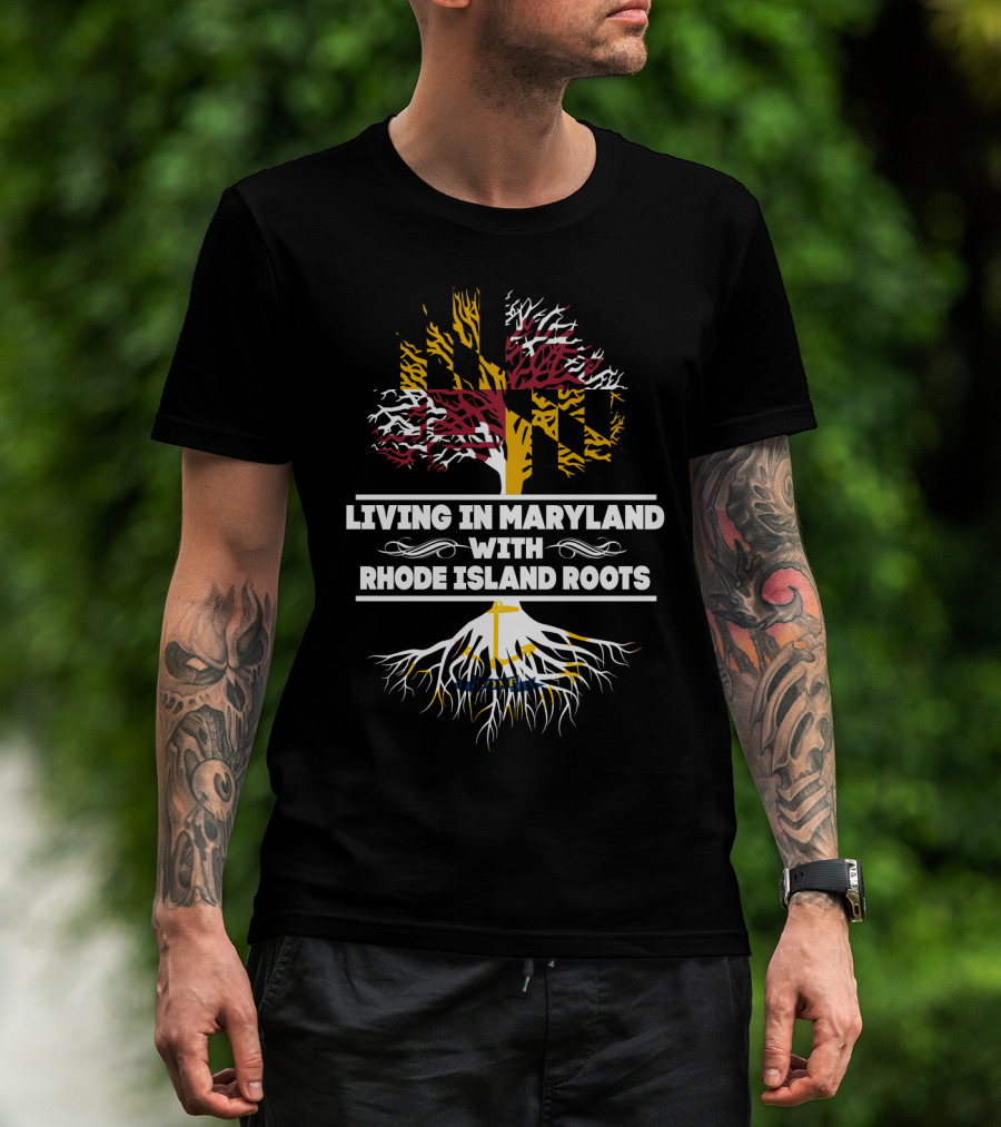 Living In Maryland And Embracing Rhode Island Roots Through State-Themed Tree T-Shirt