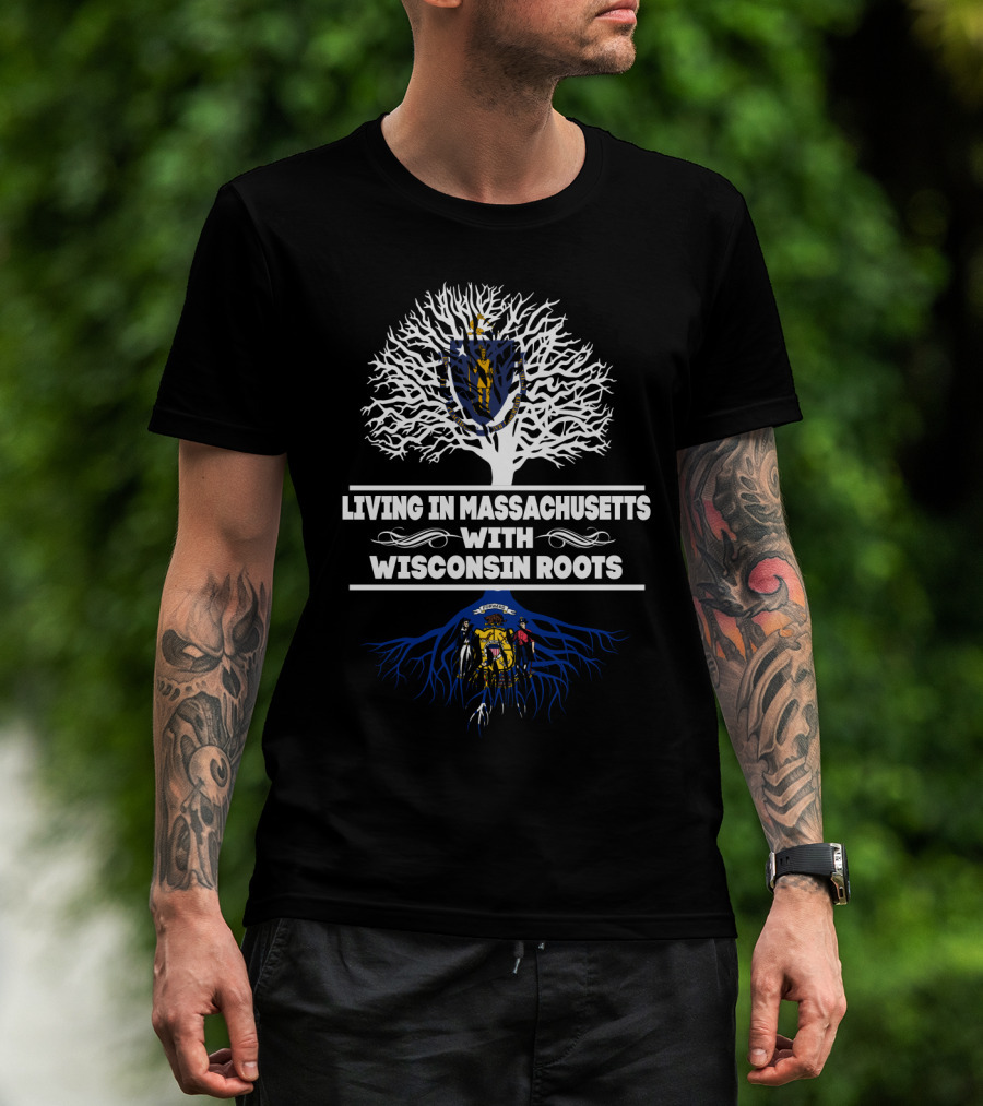 Living In Massachusetts With Wisconsin Roots Embracing State Seals And Heritage Tree Symbolism T-Shirt