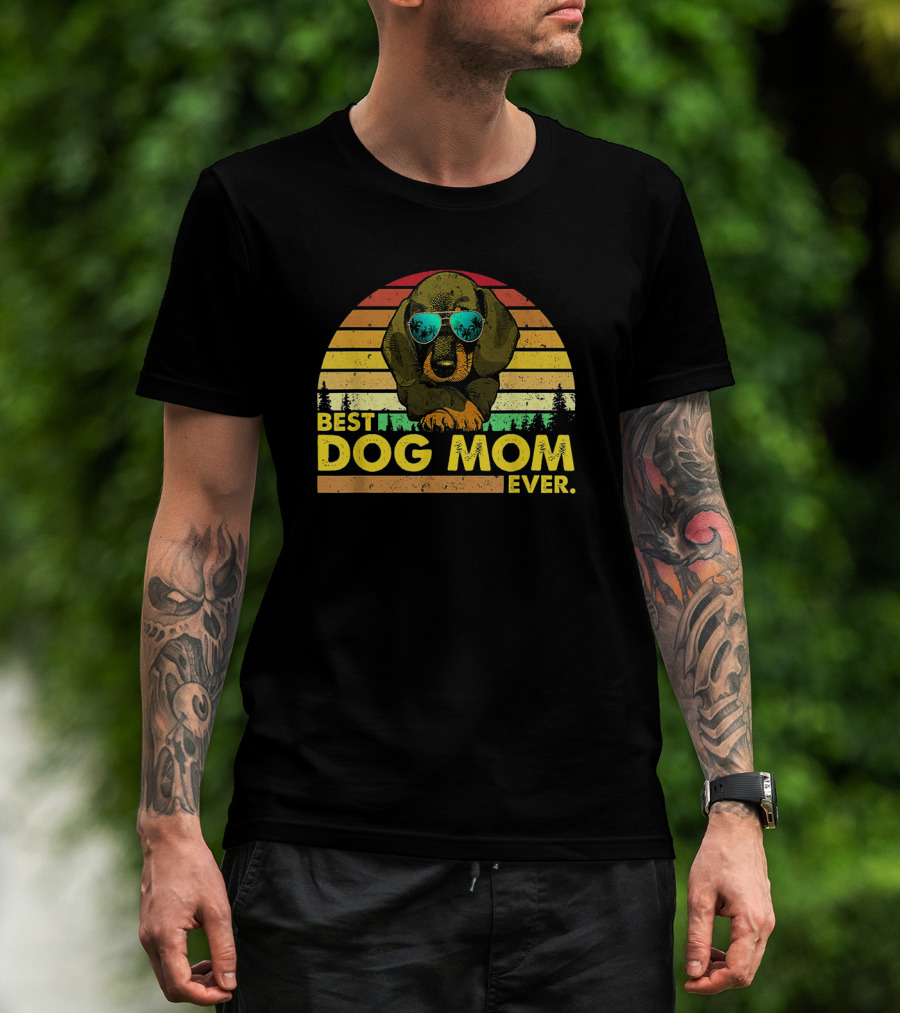 Vintage Best Dog Mom Ever With Dachshund In Retro Sunset T-Shirt