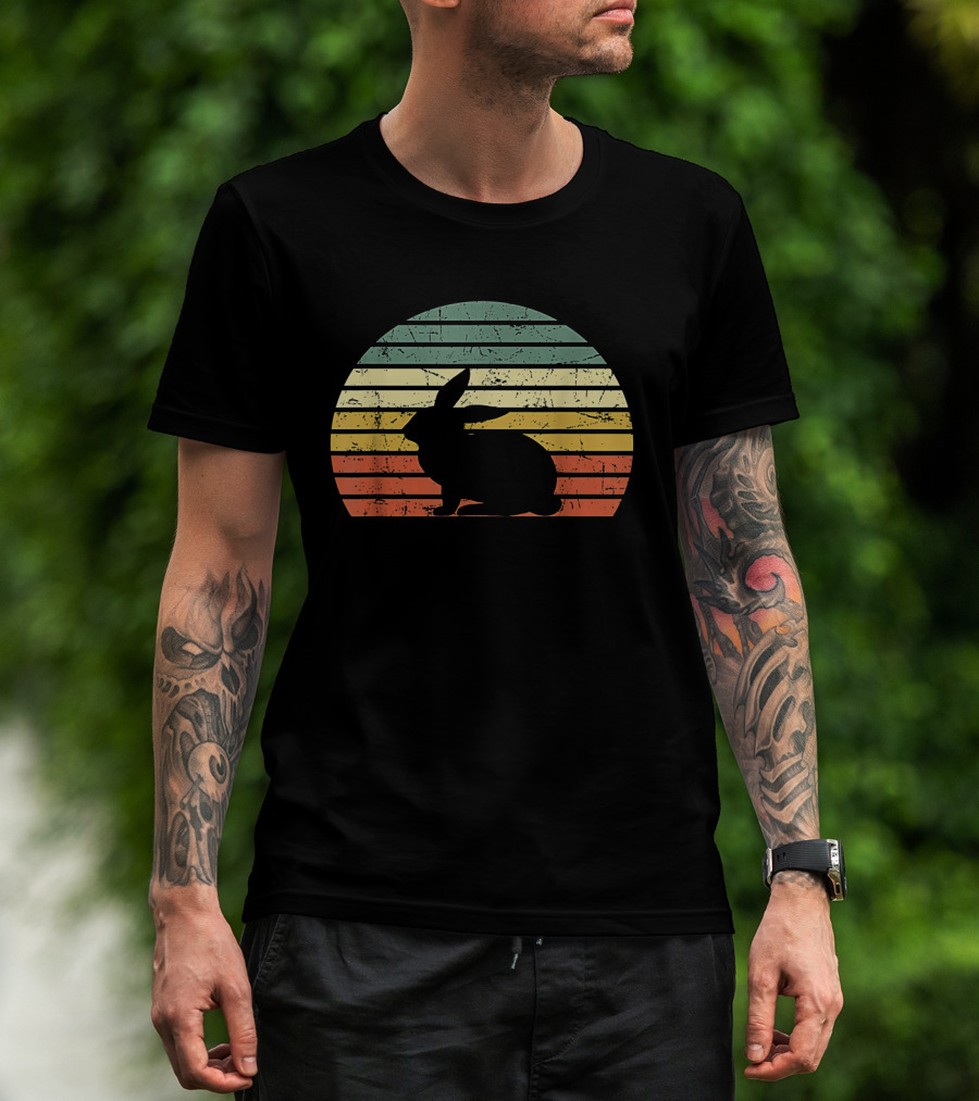 The Retro Sunset Silhouette Rabbit Vintage 70s T-shirt is designed for everyday wear and a consistent fit. Fabric is pre-shrunk ring-spun cotton with durable stitching. See the size chart below for exact measurements.