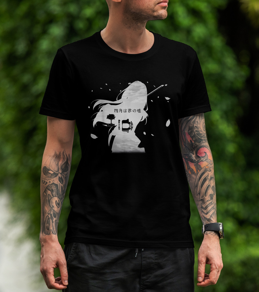 Your Lie In April Anime Piano And Violin Silhouette With Tree And Clouds T-Shirt