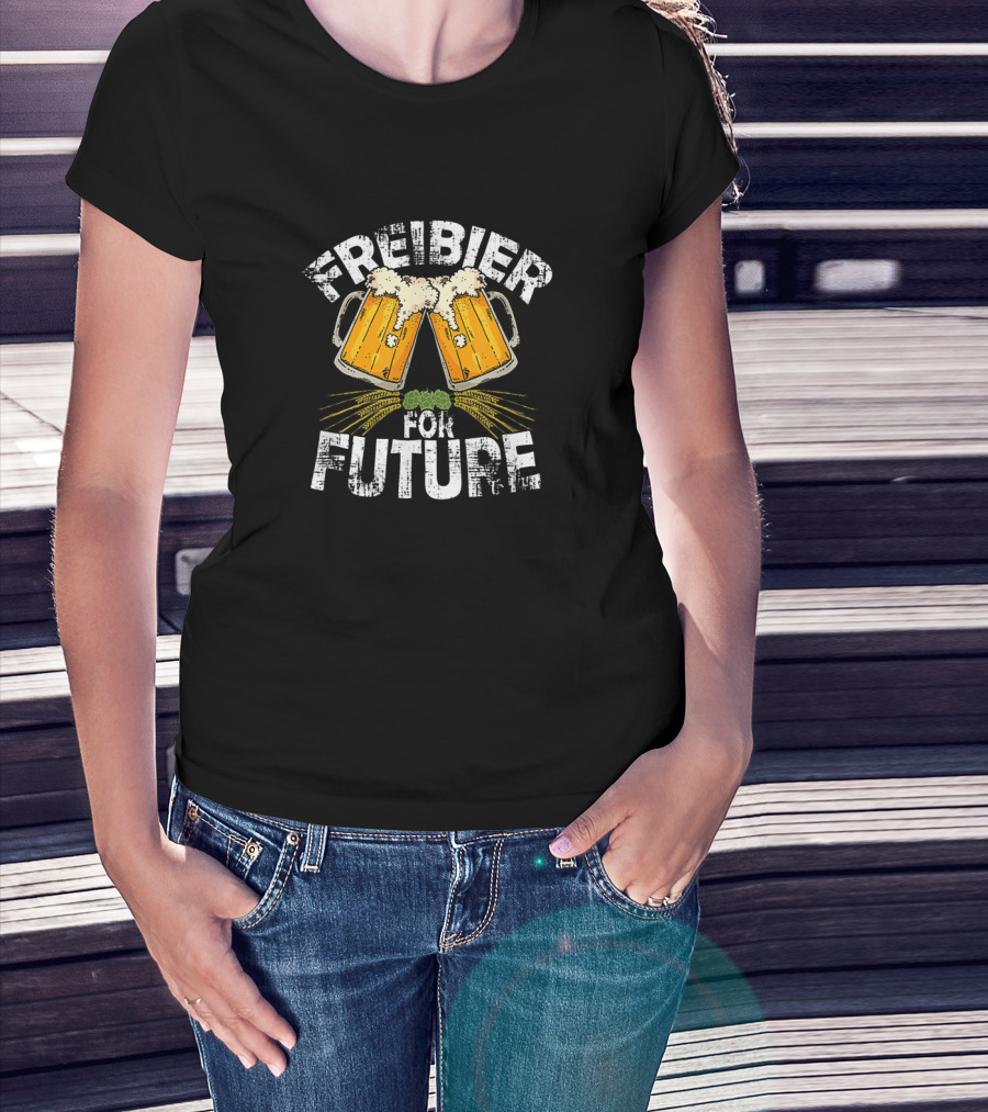 Freibier For Future Cheers With Beer Mugs And Green Hops Image T-Shirt
