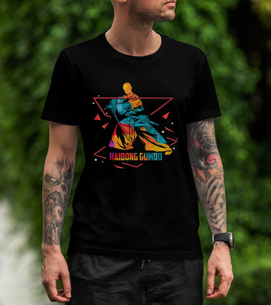 Haidong Gumdo Dynamic Martial Arts Illustration Rainbow Geometric T-Shirt